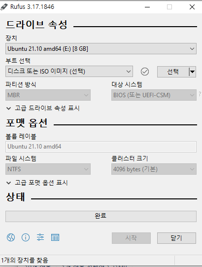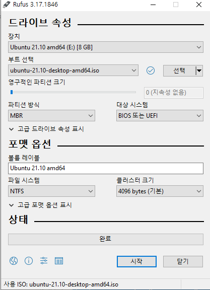 저는 우분투 21 을 USB에 부팅디스크로 만들어보겠습니다.
