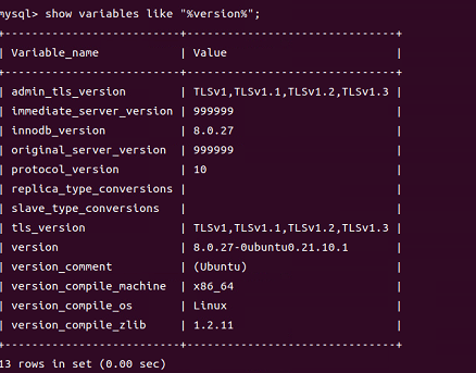 sudo apt-get update sudo apt-get install mysql-server sudo ufw allow mysql #workbench 사용하려면 허용하기. sudo systemctl start mysql # mysql 시작 sudo systemctl enable mysql #서버 재시작시 mysql 자동 재시작 show variables like "%version%"; #mysql 버전 확인 8.0.27