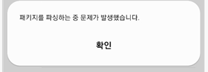 패키지를 파싱하는 중 문제가 발생했습니다. 라고 안내가 나왔다.