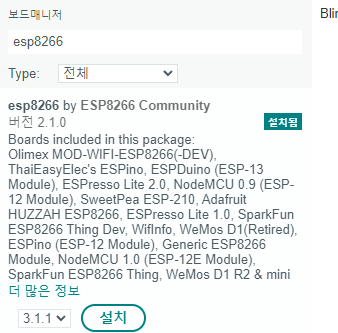 esp8266 검색후 설치