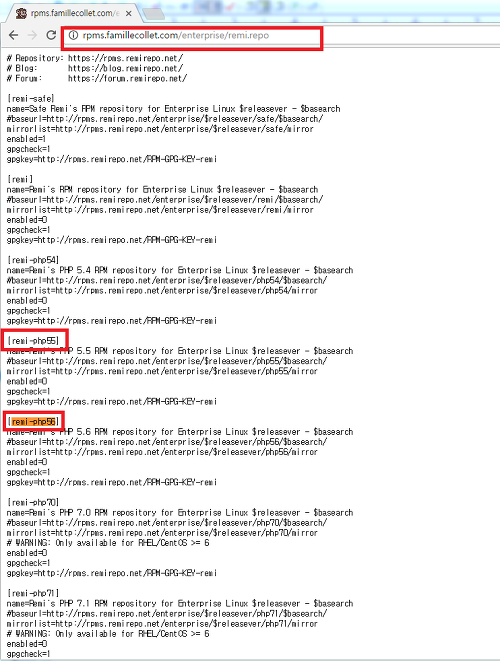 http://rpms.famillecollet.com/enterprise/remi.repo 주소로 들어가보면