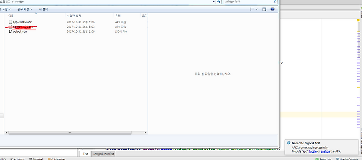 release 디렉토리 아래에 보면 apk 가 생성되어있다...