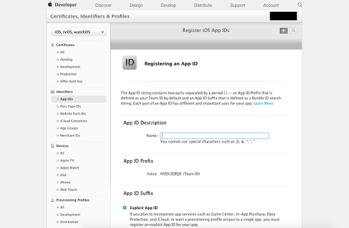 위에서 본 애플개발자 사이트의 -> Identifiers -> App IDs -> ID 를 넣으면 됩니다.