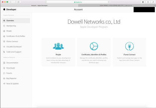 https://developer.apple.com -> account 배포할 계정으로 로그인을 한다.