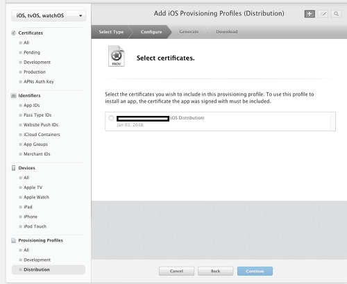 (개발용 을 원한다면 Development 를 선택해서 Xcode 에서 프로비저닝을 잘 선택해 주면 됩니다. )
