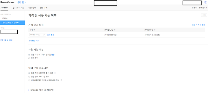 어플의 판매가격은 계정과는 상관없이 앱 내부에서 금액을 설정해 주시면 됩니다.