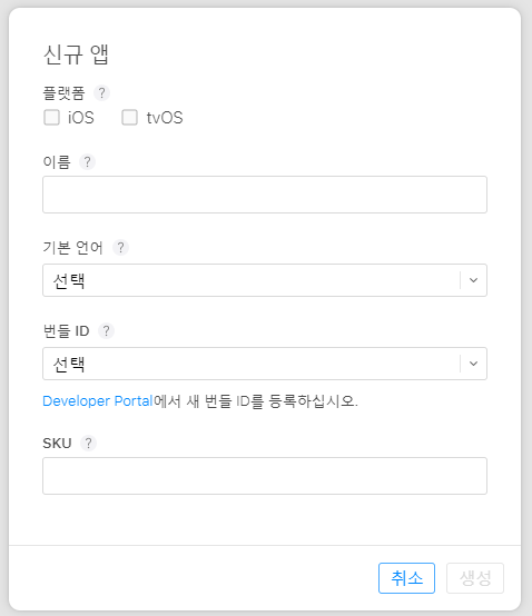 어플명 , 번들아이디(앞에서 요구했던 번들아이디!) , 두가지만 입력하면 된다.