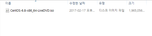 이미지 상에서의 이름은 CentOS-6.8-i386-bin-DVD1.iso 3.8 기가